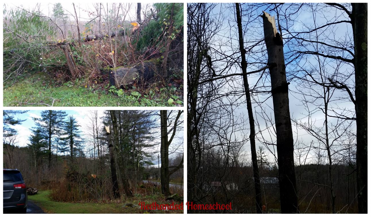 We once lost 14 trees to a wind storm. That's just the trees in the yard. It doesn't count any in the woods. It was a terrifying day in which I hid in the basement with the bigger littles. Since then, we've had plenty of crazy wind storms, but I worry a *lot* less than I used to about trees smashing our house.